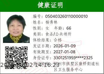 [健康证]杭十四中康桥学生--杨秀琳