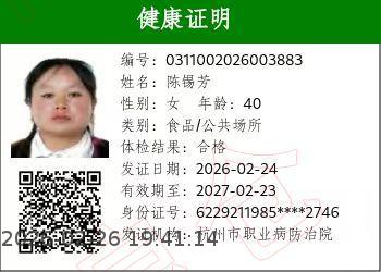 [健康证]高级中学钱江校区学生--陈锡芳